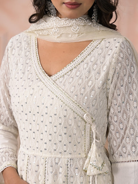 Graceful Georgette Angrakha Anarkali With Organza Dupatta And Pants