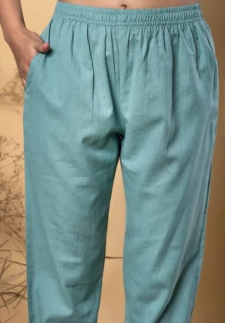 Experience elegance with this premium cotton khadi co-ord set, featuring a natural color dye and soft, flexible fabric. The top offers a flattering fit with a front length of 32 inches and a back length of 37 inches, adorned with intricate, fully embroidered heavy threadwork crafted by computer precision. The matching pants measure 38-39 inches in length, completing a stylish up-and-down coordinated look perfect for sophisticated occasions.