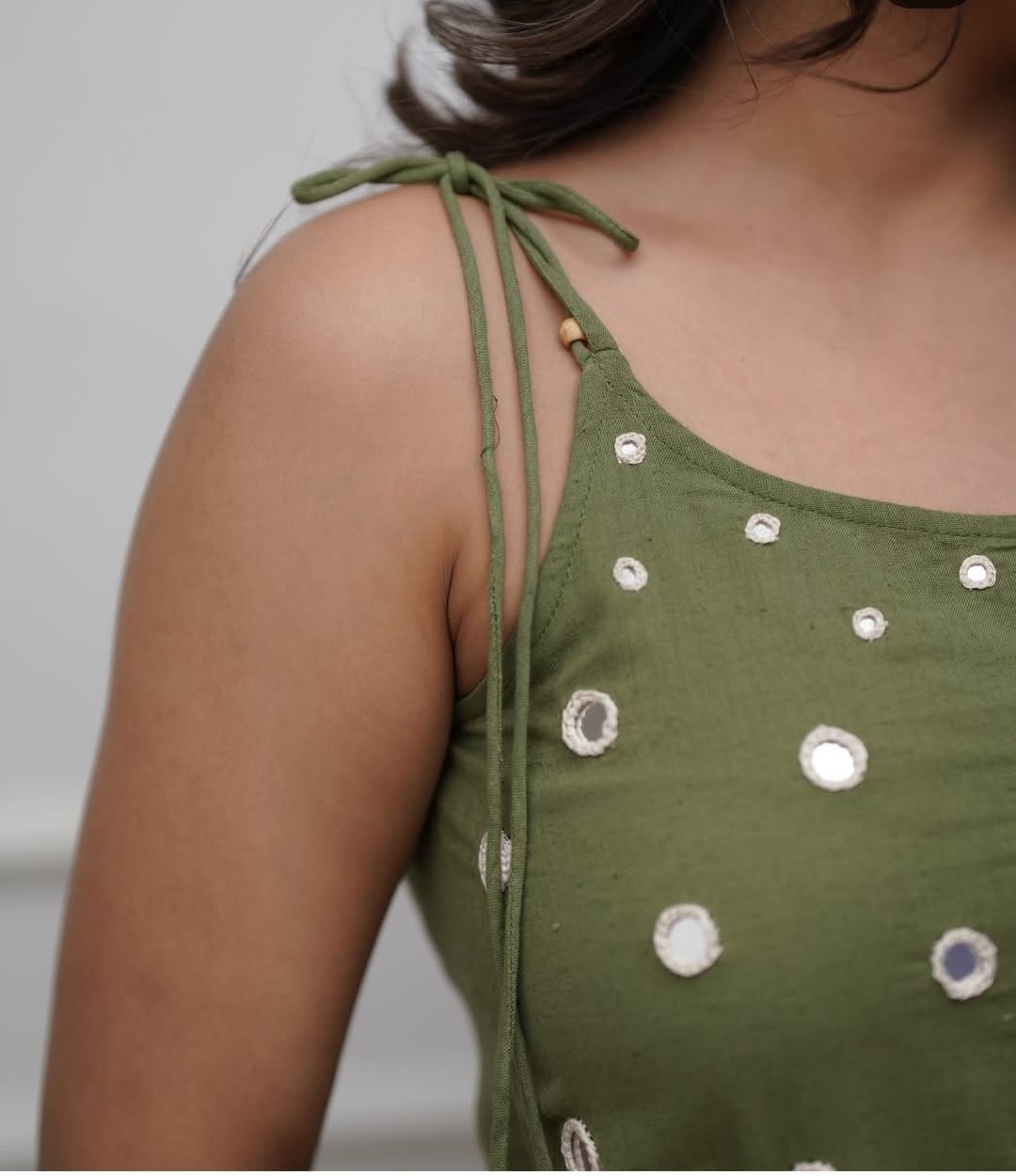 Expertly crafted from high-quality cotton and adorned with intricate mirror work, this kurta is both comfortable and stylish. The sleeveless design provides effortless elegance while the fabric ensures a soft and breathable fit. Perfect for any occasion, this kurta is a must-have addition to your wardrobe.